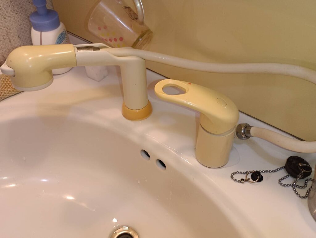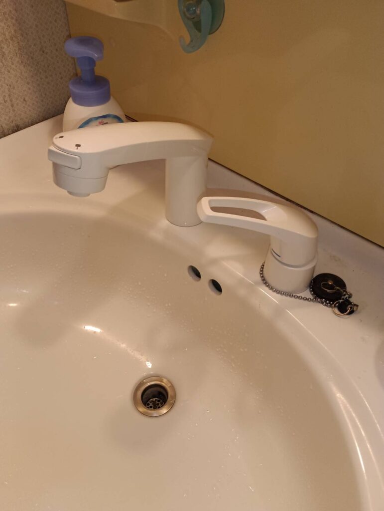 先日、鳥取市のお客様よりご依頼いただき、洗面化粧台の水栓を交換しました。